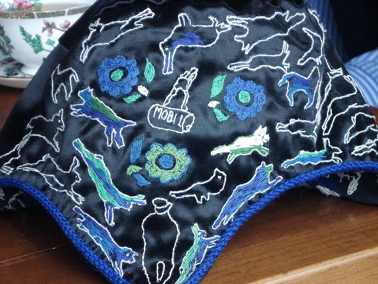 Lum kijkt mij aan met haar scherpe blik. Het mutsje danst op haar hand. 'Je bent pas op de helft', zegt Lum. Ik weet het, maar ik wil experimenteren met drukke patronen en rustige vlakken. 'Jullie zijn bang voor de leegte', roep ik uit. Horror Vacui noemt Dirk Kok het in zijn boek ' Kleurrijk gedrukt - Oorsprong en ontwikkeling van het Staphorster Stipwerk. Mijn naslag werk. Als Lum de muts op haar hoofd heeft, zie ik het ook. Veel te kaal. Het moet druk. Ik beloof Lum de muts helemaal vol te borduren. Horror Vacui. Angst voor de leegte. Ik ben er nu ook mee besmet.
