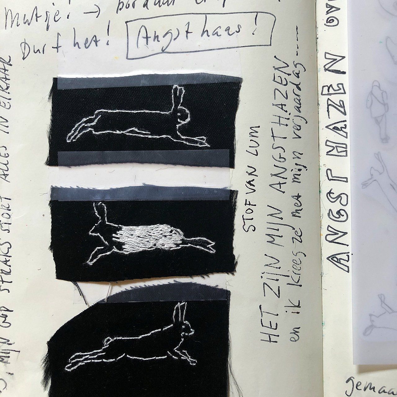 Ik pak een vel en begin te schrijven. Alles wat in mij opkomt. De hazen. Mijn angsthazen. De dode haas die ik altijd van opa kreeg voor mijn verjaardag. Nog steeds ben ik gek op wild. De gele bloemen op het kuipje Becel van opa. Het kraaien van de vogels als we door het maisveld liepen. Het patroon van de mutsjes zit al jaren in mijn hoofd. Ik was alleen de bron vergeten. Verborgen herinneringen uit mijn onderbewuste. Een deel is verbonden met mijn jeugd in Staphorst.