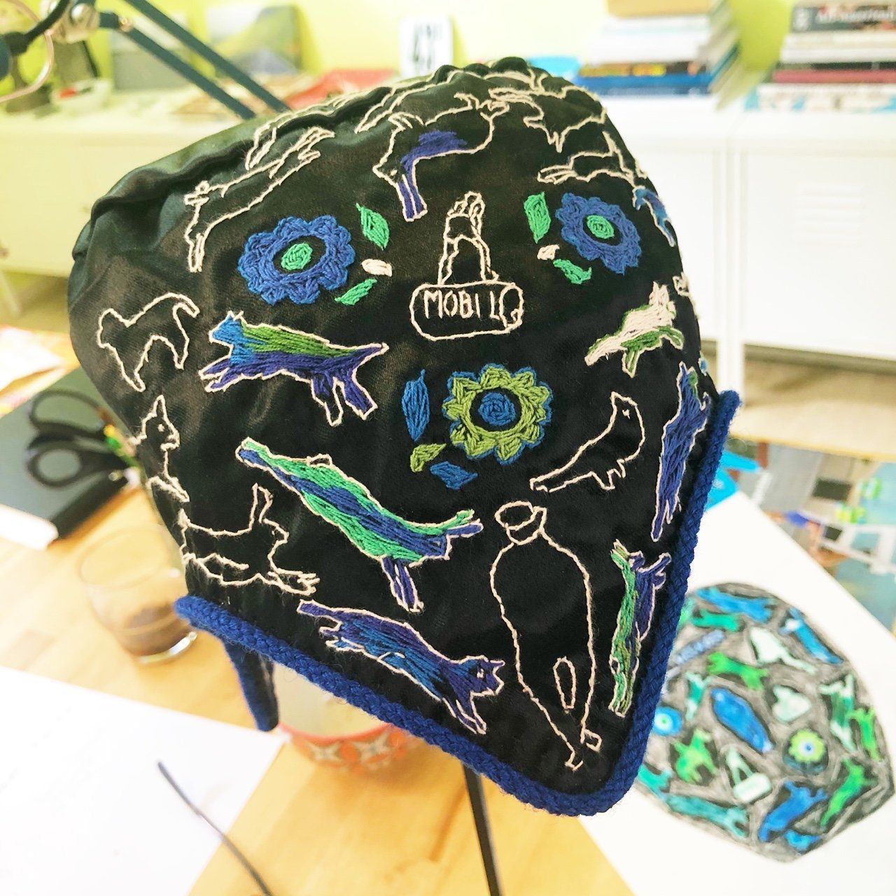 Terug in Den Haag borduur ik de hele achterkant van de muts. Ik ben weer los.