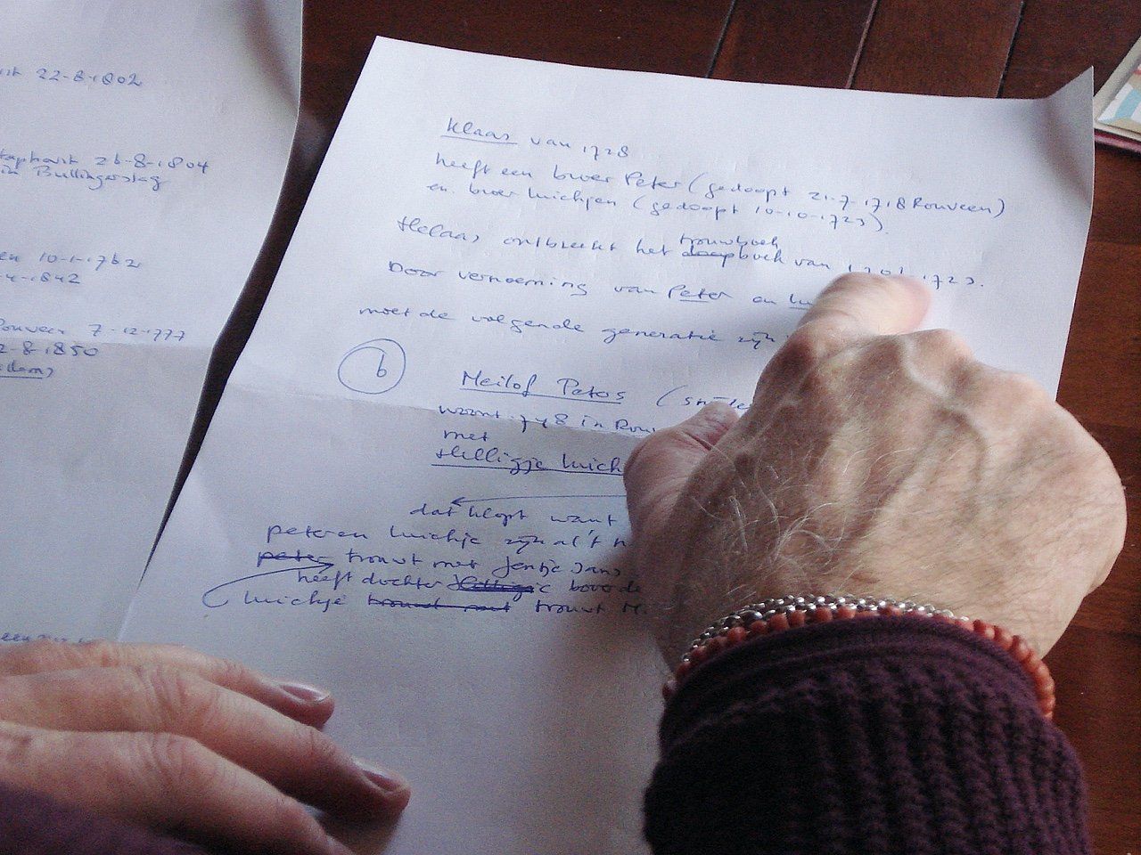 Johan heeft mijn stamboom uitgezocht. Ik volg zijn vinger. De lijn van mijn opa Meilof Bouwman. Mijn voorouders zijn geboren in Staphorst. Ik heb dus echt Staphorster bloed. Rouveen, Halfweg of IJhorst. Ze liggen op zandkorrel afstand van Staphorst maar dan ben je nog geen